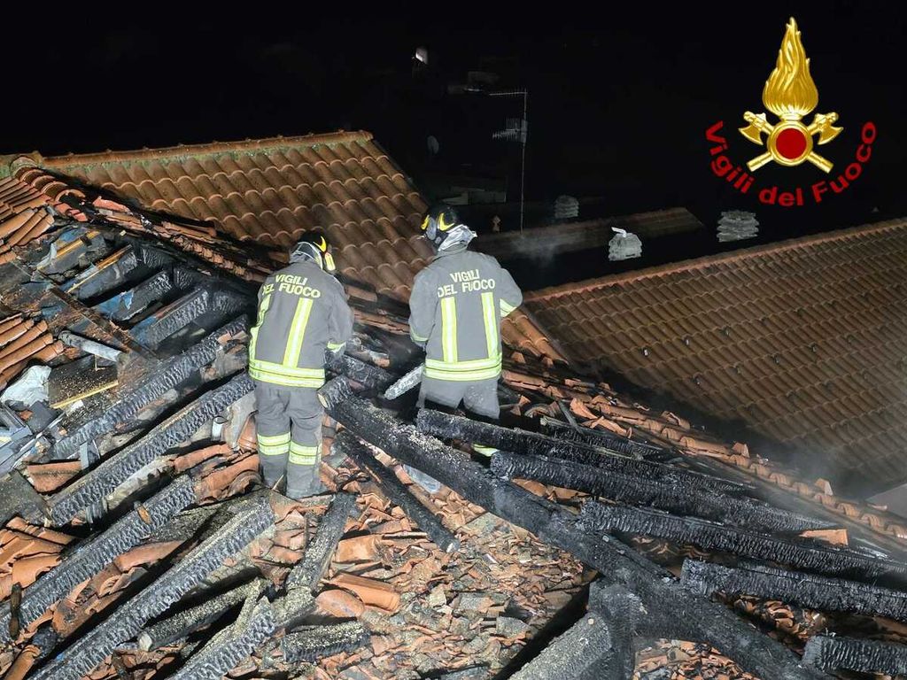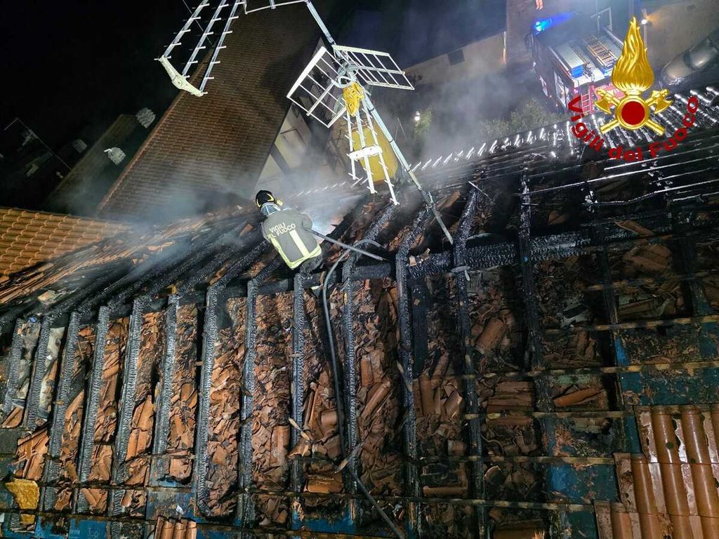 FOTO. Serata di fuoco ad Albizzate: tetto distrutto da un incendio