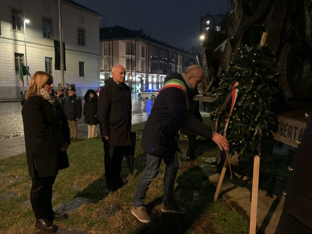 Nella Giornata della Memoria, alle 18, la città si è raccolta in una cerimonia intensa per la deposizione delle corone ai Monumenti dei Caduti. La prima tappa si è svolta al monumento di via Fratelli d’Italia, dove il sindaco Emanuele Antonelli ha deposto la corona in un clima di raccoglimento. Da lì il corteo si è spostato a Palazzo Gilardoni, davanti al monumento ai Caduti nei lager, collocato prima della scalinata del palazzo comunale, per un secondo momento di omaggio. La cerimonia si è poi conclusa nella chiesetta di Sant’Anna, accompagnata dal suono della tromba che ha intonato il Silenzio, amplificando l’emozione e il senso di rispetto condiviso dai presenti. (VIDEO).