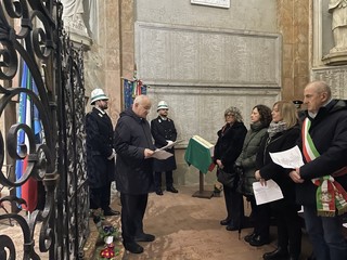 Nella Giornata della Memoria, alle 18, la città si è raccolta in una cerimonia intensa per la deposizione delle corone ai Monumenti dei Caduti. La prima tappa si è svolta al monumento di via Fratelli d’Italia, dove il sindaco Emanuele Antonelli ha deposto la corona in un clima di raccoglimento. Da lì il corteo si è spostato a Palazzo Gilardoni, davanti al monumento ai Caduti nei lager, collocato prima della scalinata del palazzo comunale, per un secondo momento di omaggio. La cerimonia si è poi conclusa nella chiesetta di Sant’Anna, accompagnata dal suono della tromba che ha intonato il Silenzio, amplificando l’emozione e il senso di rispetto condiviso dai presenti. (VIDEO).