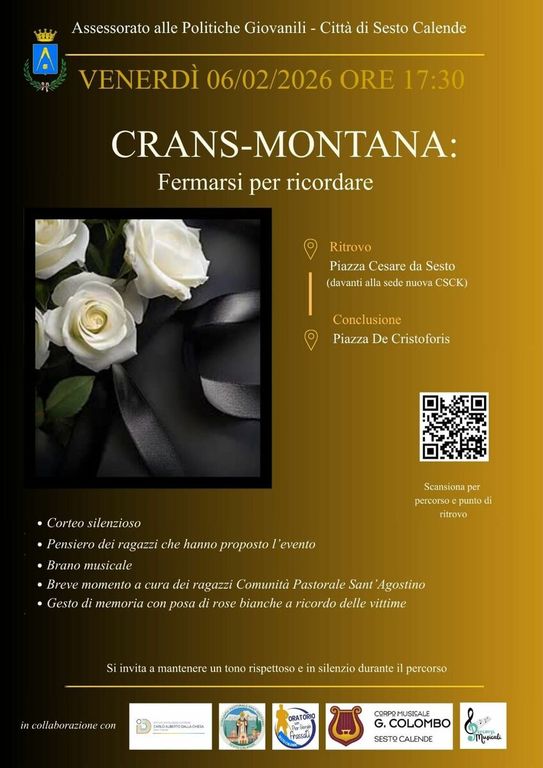 “Crans-Montana: Fermarsi per ricordare”, è il titolo dell'iniziativa nata da una proposta di ragazze e ragazzi di Sesto Calende, maturata a partire da un evento che li ha colpiti e scossi profondamente, come del resto è avvenuto per tutti i cittadini, rimasti senza parole davanti ad una tragedia immane che era evitabile.