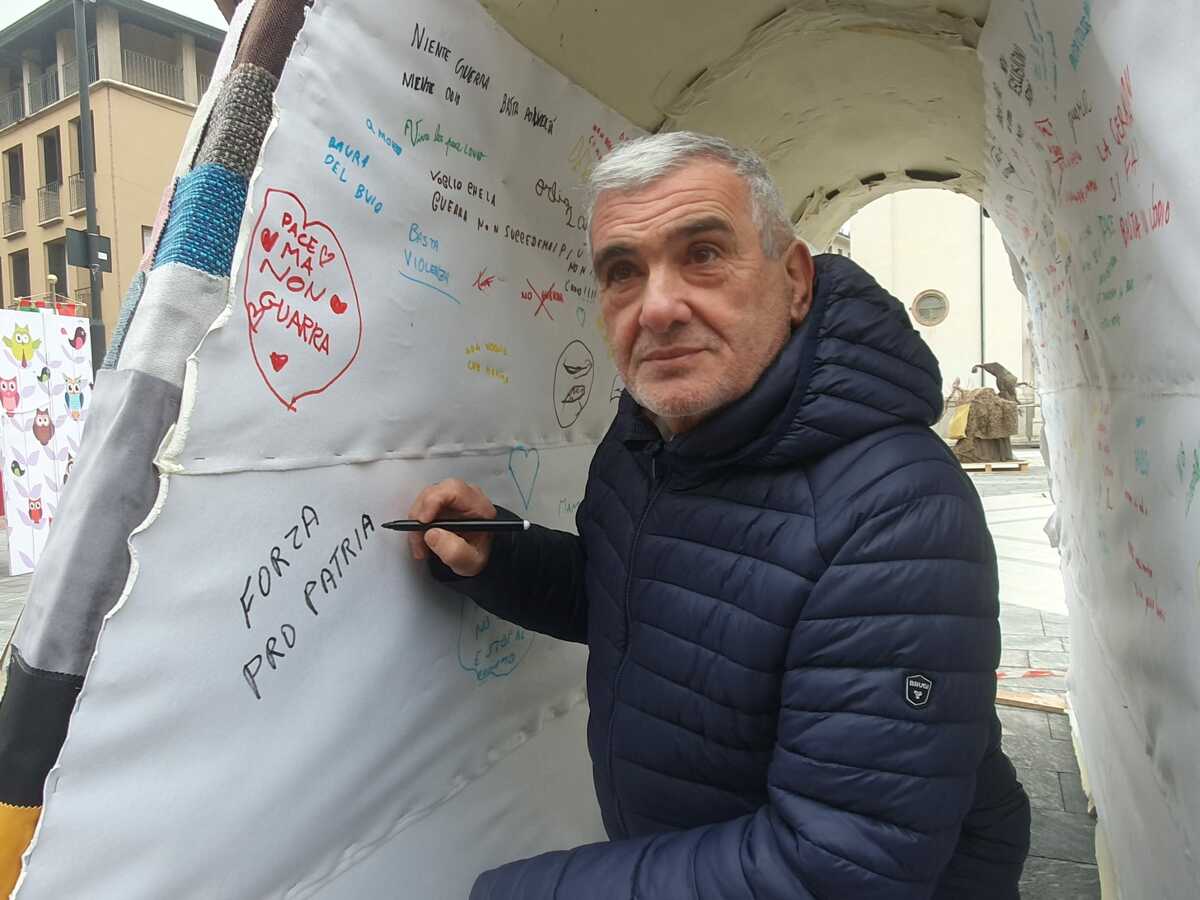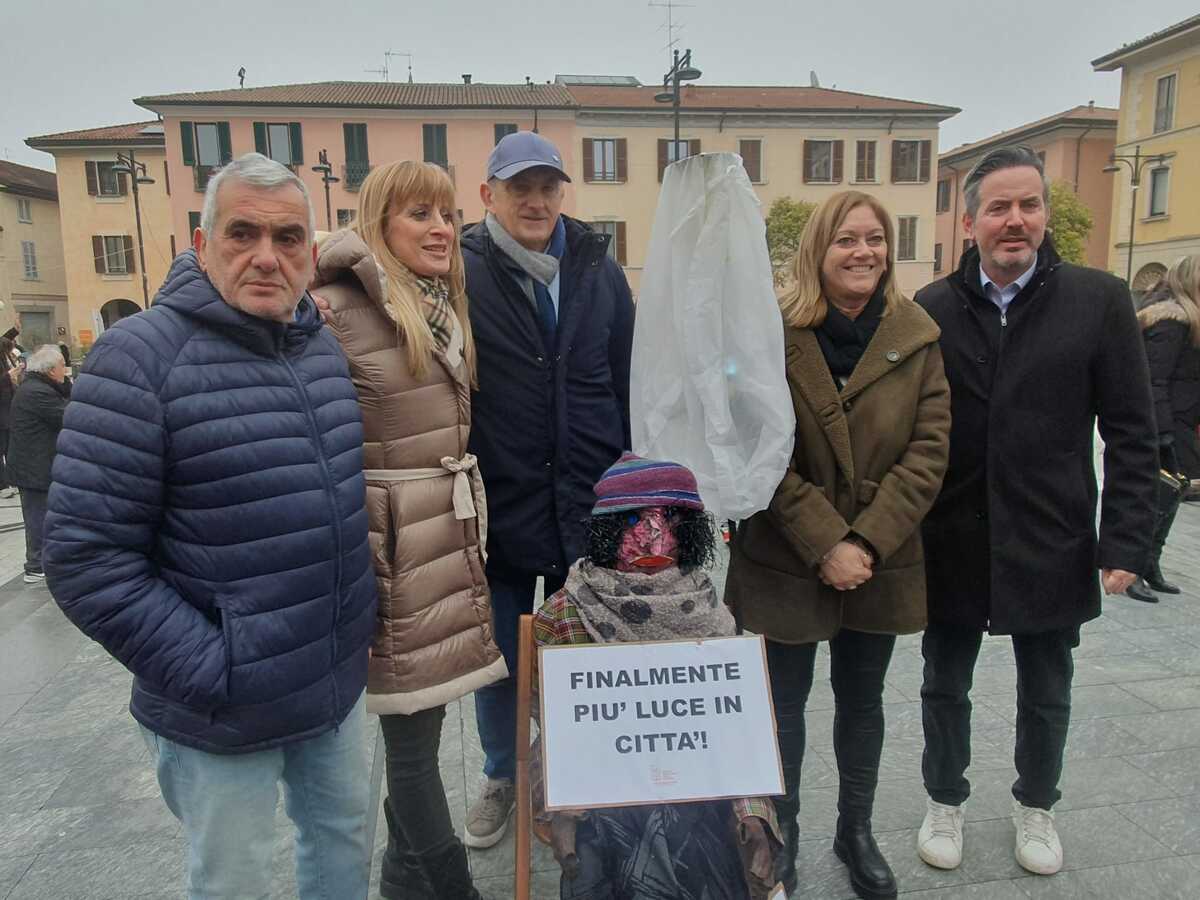 «Oggi arriverà la notizia del terzo mandato, quindi sarò ancora io sindaco», ha scherzato Antonelli posando per una foto davanti al fantoccio insieme a Tovaglieri.