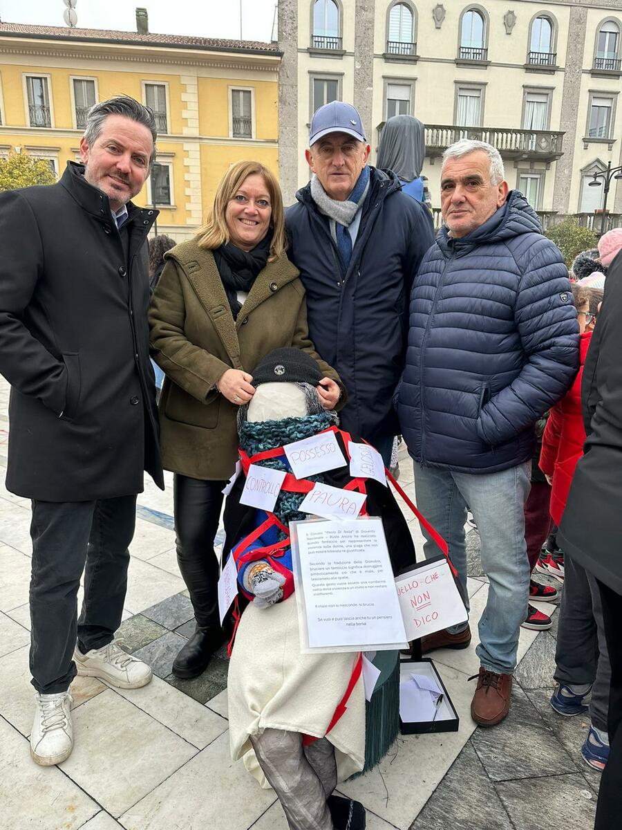 I giovani leghisti quest'anno puntano sulle tre "papabili" candidate sindaco in vista delle elezioni del 2027: al centro del fantoccio c'è l'eurodeputata Isabella Tovaglieri, con al fianco gli assessori Paola Reguzzoni e Manuela Maffioli. Non mancano critiche al politicamente corrento e un riferimento alle polemiche del passato con la dirigente dell'Ite Tosi Amanda Ferrario ( «Stavolta andrà bene alla presida?», si legge).