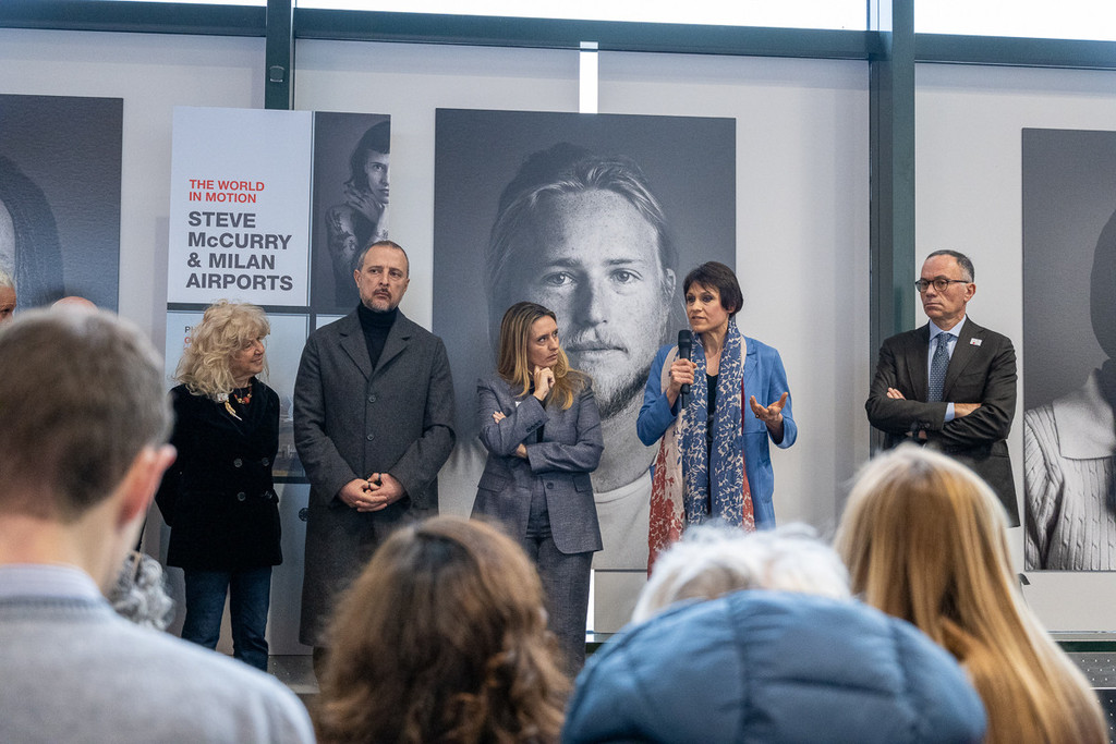 All’inaugurazione sono intervenuti Francesca Caruso, assessore alla Cultura di Regione Lombardia, Elena Buscemi, presidente del Consiglio comunale di Milano, Armando Brunini, amministratore delegato di Sea Aeroporti di Milano, la curatrice Biba Giacchetti e lo stesso Steve McCurry.