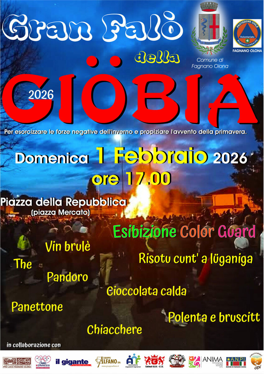 Ultima ma non ultima, i fagnanesi sono invitati a partecipare al tradizionale Gran Falò della Gioeubia. L’appuntamento è fissato per le ore 17.00 del 1° febbraio, in Piazza della Repubblica (Piazza Mercato). Sarà un pomeriggio di festa, musica e sapori autentici.
