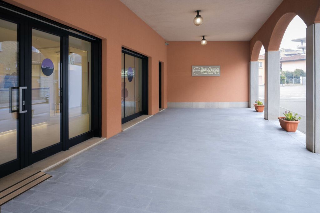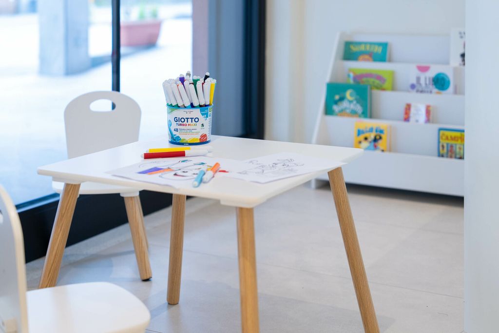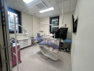 Gli ambienti sono stati rinnovati completamente, con taglio moderno e luminoso: due piani per 300 metri quadrati, sei studi odontoiatrici di nuova generazione. Inoltre, una sala d'attesa colorata chiama i bambini per farli sentire più a proprio agio. Infine, c'è un parcheggio privato.