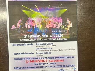 Domani, 4 febbraio, si celebra la Giornata internazionale contro il cancro, dedicata alla prevenzione, alla diagnosi precoce e alla cura. A Gallarate l'occasione si trasforma in un racconto più ampio, che intreccia sanità e territorio, istituzioni, volontariato, scienza ma soprattutto emozioni. Un racconto che prende forma nella musica e che troverà la sua espressione il 21 febbraio al Teatro Condominio con lo spettacolo “Suoniamole al cancro”, molto più di un concerto, molto più di un evento benefico.