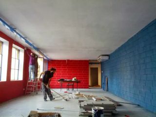 Volontari al lavoro in quello che sarebbe diventato il bar del circolo