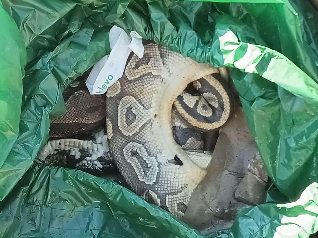 Dieci pitoni morti buttati in un sacchetto lungo la ciclabile a Laveno