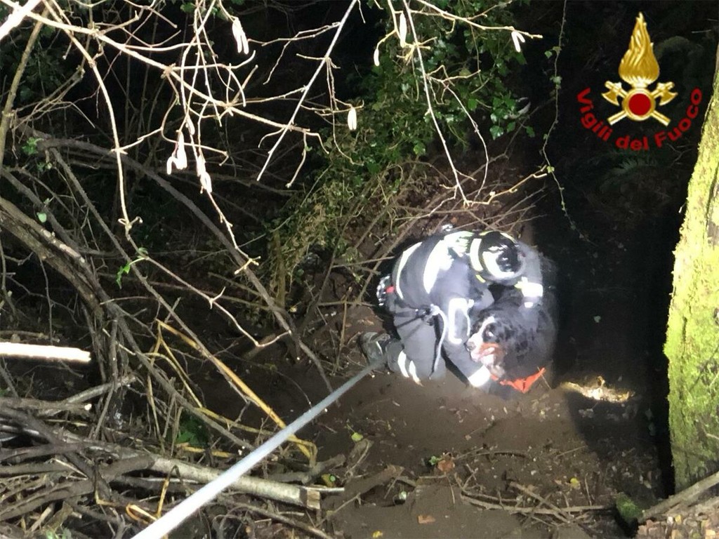 La richiesta di aiuto è partita per soccorrere un cane scivolato in un dirupo: un "bernese" di circa quaranta chili che è stata raggiunto dagli operatori, imbracato e quindi recuperato e tratto in salvo.