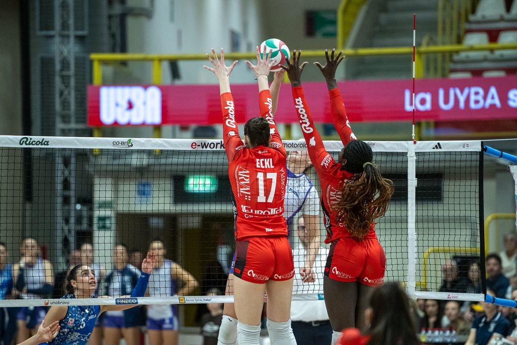 Battista 6, Pelloni 6, Gennari 6, Seki 6, Diouf 6, Obossa 5, Eckl 5,5, Torcolacci 5,5, Parra 5, Schmit sv, Parlangeli sv, Booth sv. All. Barbolini 5,5. Non entrate: Metwally, Boldini.