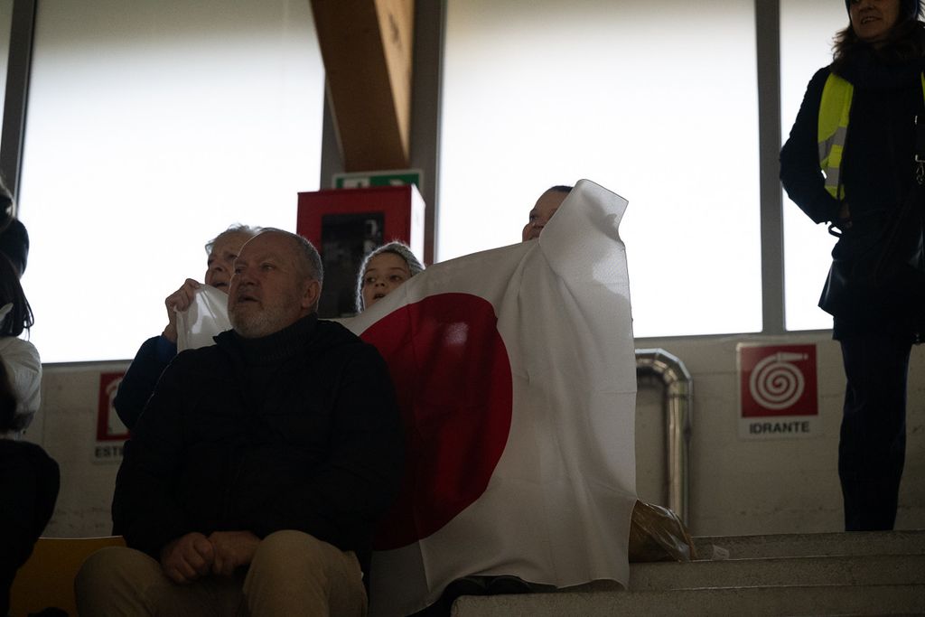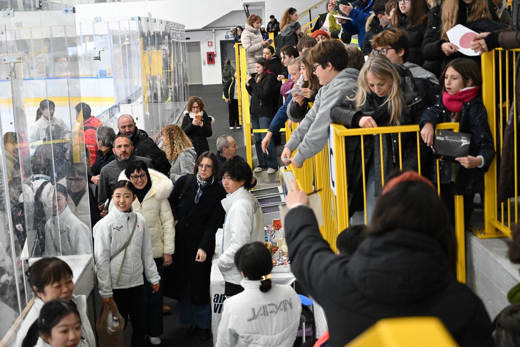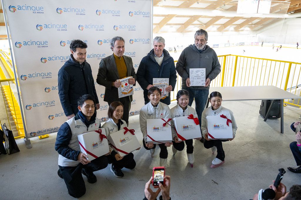 Bagno di folla riservato dall'Acinque Ice Arena alla fenomenale squadra giapponese di pattinaggio di figura guidata dal "gatto" Yuma Kagiyama, pretendente all'oro prenotato dal divino Malinin, che questa mattina si è allenata a porte aperte nella sua seconda casa di via Albani