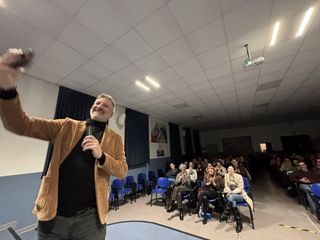 Un'aula magna gremita per rivivere un viaggio, quello americano, che Dario Moretti ha affidato a parole e foto, con la complicità impeccabile della musica. Fagnano ha così salutato con entusiasmo il libro "Piccole storie inusuali", che esplorano l'Ovest degli Stati Uniti, nella serie "Un caffè con l'autore".