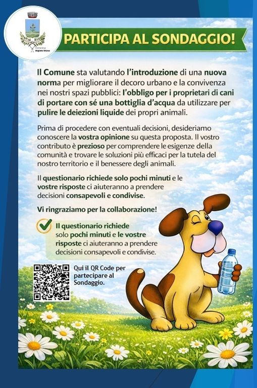 Il vostro contributo è prezioso per comprendere le esigenze della comunità e trovare le soluzioni più efficaci per la tutela del nostro territorio e il benessere degli animali. Il questionario richiede solo pochi minuti e le vostre risposte ci aiuteranno a prendere decisioni consapevoli e condivise. Vi ringraziamo per la collaborazione».