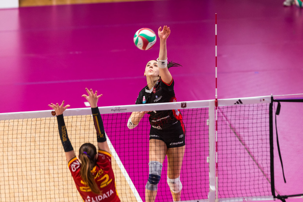 Nel bellissimo e quanto mai caldo clima del PalaTiziano, la squadra allenata da coach Mauro Tettamanti si gasa, regala spettacolo e decide di indossare l’abito delle occasioni importanti, lottando con “cazzimma” su ogni pallone, mettendo per larghi tratti alle corde le Wolves. Alla fine a fare la differenza è con ogni probabilità la prova monstre di Nikoleta Perovic: sono stati necessari 41 suoi punti per piegare Rebora e compagne con un super 42% offensivo, 5 muri e tanta freddezza nei momenti decisivi. In casa Futura Volley spiccano i 26 punti di una Alyssa Enneking sempre più inserita nei meccanismi biancorossi, i 18 di Marika Longobardi, il 51% di ricezione perfetta di Sophie Blasi ma in una serata del genere risalta soprattutto il fondamentale contributo della panchina: Arita Ternava sicura e preziosa in posto 2, Alessandra Talarico non solo centrale ma anche tuttofare tra difese d’istinto e tanto altro lavoro oscuro, Bianca Orlandi come sempre solida in seconda linea ed efficace in attacco, Silvia Sormani collante della retroguardia e reattiva in difesa.