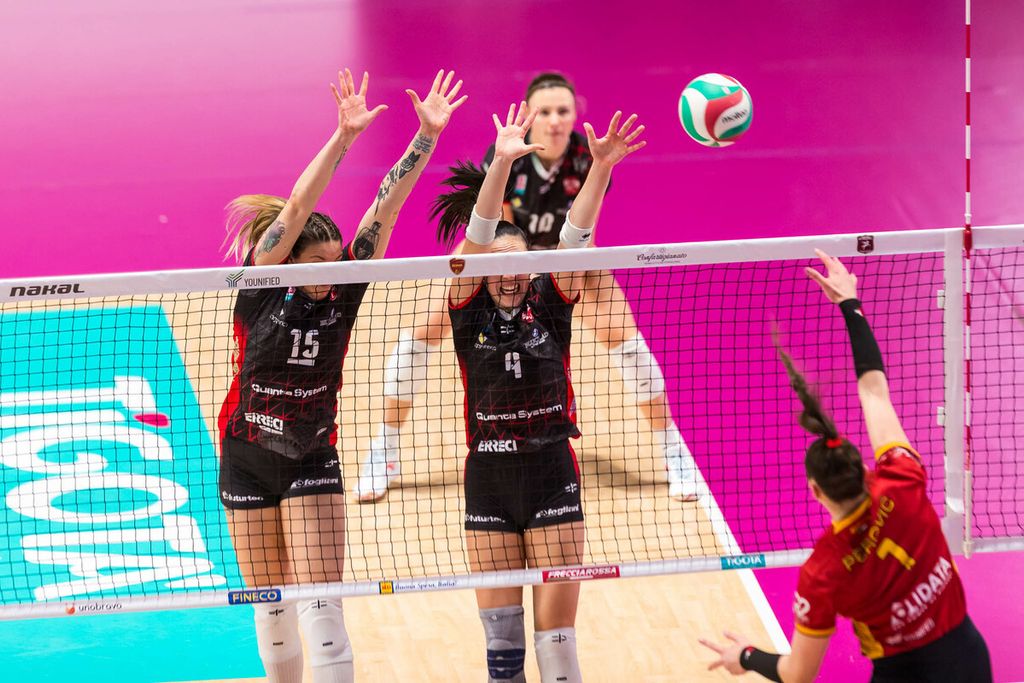 Nel bellissimo e quanto mai caldo clima del PalaTiziano, la squadra allenata da coach Mauro Tettamanti si gasa, regala spettacolo e decide di indossare l’abito delle occasioni importanti, lottando con “cazzimma” su ogni pallone, mettendo per larghi tratti alle corde le Wolves. Alla fine a fare la differenza è con ogni probabilità la prova monstre di Nikoleta Perovic: sono stati necessari 41 suoi punti per piegare Rebora e compagne con un super 42% offensivo, 5 muri e tanta freddezza nei momenti decisivi. In casa Futura Volley spiccano i 26 punti di una Alyssa Enneking sempre più inserita nei meccanismi biancorossi, i 18 di Marika Longobardi, il 51% di ricezione perfetta di Sophie Blasi ma in una serata del genere risalta soprattutto il fondamentale contributo della panchina: Arita Ternava sicura e preziosa in posto 2, Alessandra Talarico non solo centrale ma anche tuttofare tra difese d’istinto e tanto altro lavoro oscuro, Bianca Orlandi come sempre solida in seconda linea ed efficace in attacco, Silvia Sormani collante della retroguardia e reattiva in difesa.