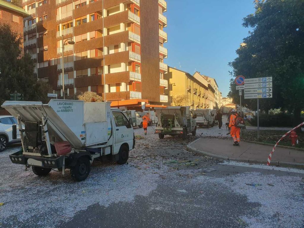 E mentre il corteo dei carri era ancora in corso, gli addetti di Agesp erano già all’opera per iniziare a ripulire le strade da coriandoli e stelle filanti.