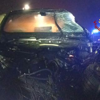 Ferno, auto esce di strada e abbatte due pali