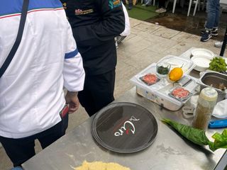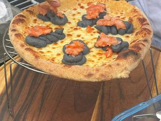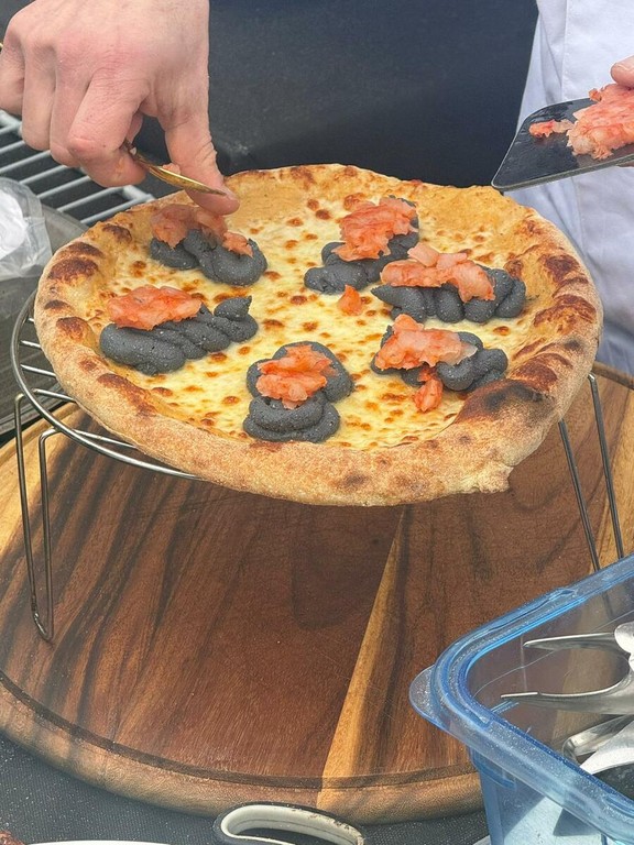 Peppe Lab si è presentato anche quest’anno molto agguerrito, cercando l’exploit nell’ambito gourmet con una combinazione di ingredienti molto particolare: la sua prima pizza in gara è una bianca che vede, al posto della mozzarella, una crema di capesante, sulla quale viene posata una ricotta al nero di seppia, della salicornia, una tartare di gambero rosso di Mazara del Vallo e una grattata di buccia di limone.