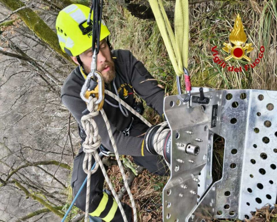 Gli operatori del Nucleo SAF (Speleo Alpino Fluviale), utilizzando tecniche di derivazione alpinistica, sono riusciti a recuperare l'animale e riconsegnarlo incolume ai proprietari.