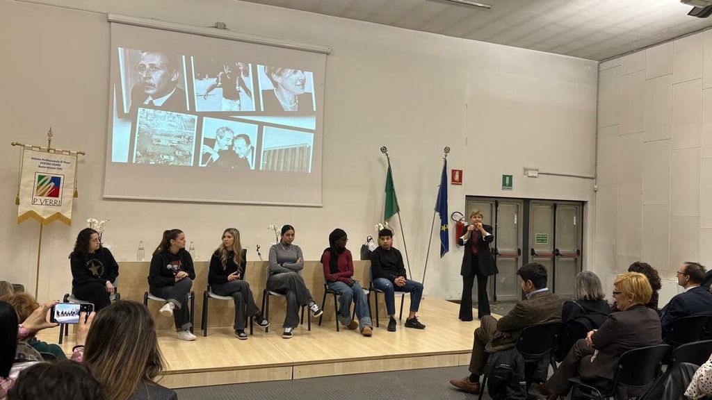 La figlia di Paolo Borsellino è stata accolta dalla dirigente Maria Cristina Cesarano: «Che questo incontro non sia solo un ricordo da custodire, ma una scintilla da alimentare ogni giorno - ha detto - Un grande piacere dare il benvenuto a lei e alle autorità qui al Verri per vivere insieme un momento di straordinaria intensità e profondo significato, uno di quei momenti che non si limitano a riempire un’aula, ma toccano l’anima di una comunità».