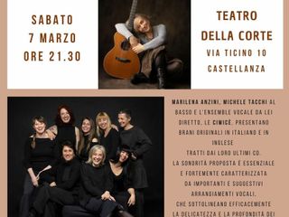 Sabato 7 marzo alle 21.30 al Teatro della Corte di via Ticino 10 a Castellanza torna la cantautrice Marilena Anzini con un concerto che intreccia voci, chitarra acustica e scrittura, in un viaggio musicale intimo e luminoso.