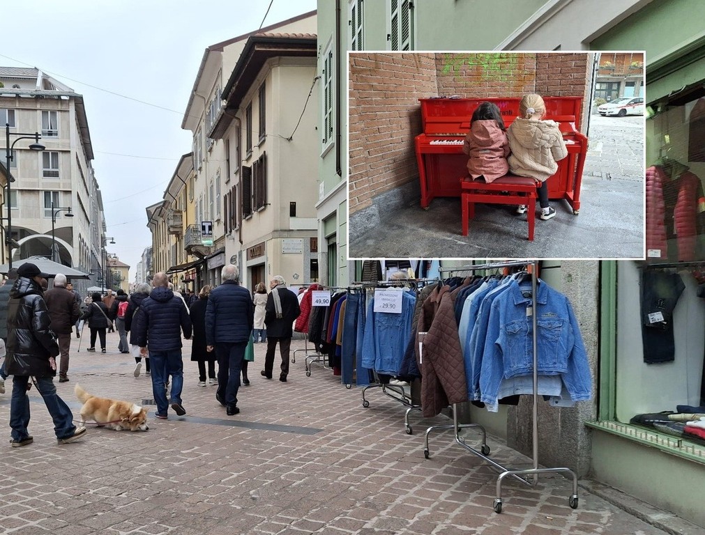 Adulti incuriositi dalle offerte dello Sbaracco, bambini attratti dai pianoforti di Suonami! Questo il colpo d’occhio, con ovvie eccezioni, offerto dalle due iniziative partite nella mattinata di oggi, 28 febbraio. Proseguiranno fino alla serata di domenica, con l’offerta di prodotti a prezzi vantaggiosi l’una, un’occasione di suonare, strimpellare o giocare, l’altra.