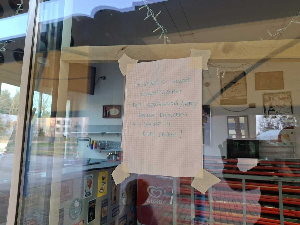 In cerca di spiegazioni, il pensiero di qualcuno corre al chiosco, chiuso. «Ha subito un furto, con tanto di danni. Forse c’è un collegamento». Sui vetri della struttura campeggia un foglio scritto a mano. Che dice e non dice, soprattutto non spiega: «In attesa di nuove comunicazioni per segnalazioni/info/reclami rivolgersi al Comune di Busto Arsizio».