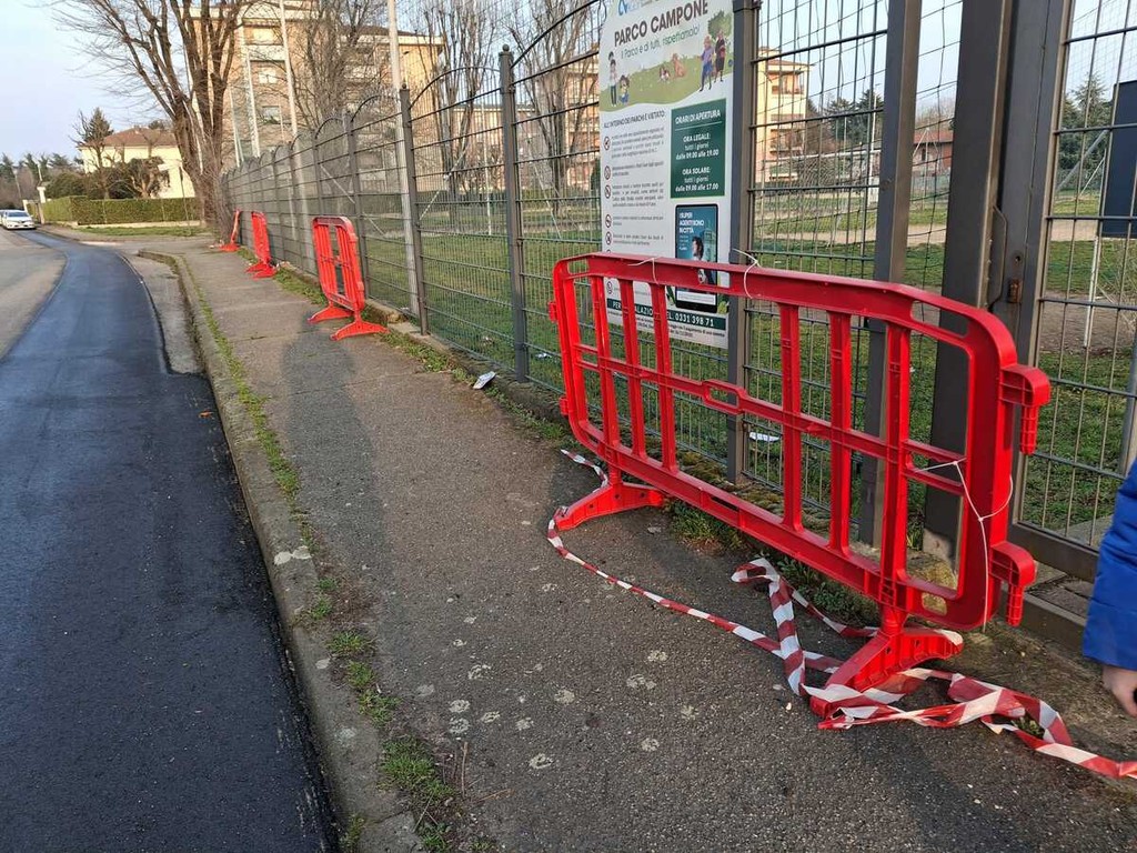 L’area verde, dotata di spazi per lo sport, chiosco e percorso per l’educazione stradale, versa in condizioni pessime, vittima di un degrado, a detta dei frequentatori, recente quanto inspiegabile. Al centro del campo da calcio ci sono ancora i resti bruciacchiati della Giöbia. Tutto intorno cartacce, buche, reti lacere, senso di abbandono