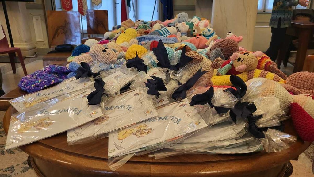 Infine è stata consegnata a tutti i partecipanti una tessera sconto con validità triennale presso due farmacie presenti sul territorio comunale. Le famiglie potranno usufruire di uno sconto del 10% su parafarmaci, integratori alimentari per bambini, dispositivi medici pediatrici ed elettromedicali, un aiuto concreto per affrontare le spese legate alla crescita dei più piccoli. Al termine della cerimonia, le famiglie hanno potuto scegliere un manufatto realizzato all’uncinetto dalle volontarie del Knit Café, piccoli "amigurumi" (giocattoli lavorati all’uncinetto secondo l’arte e la tradizione giapponese) che rappresentano il calore e l’attenzione artigianale della comunità verso i nuovi arrivati. Un dono che ogni anno viene accolto con particolare apprezzamento sia dai bambini che dai genitori.