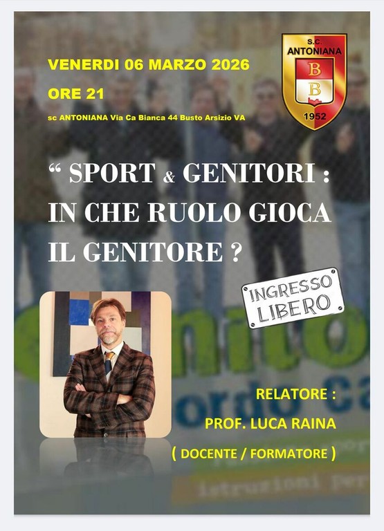 In che ruolo gioca il genitore? «La domanda del titolo, per noi e per tante società, è fondamentale. Il professor Raina ci aiuterà a trovare risposte. Siamo tutti consapevoli che intorno ai campi di calcio, e non solo di calcio, si assiste spesso a episodi e comportamenti poco edificanti. Da noi non è mai accaduto nulla di straordinario ma non possiamo sentirci immuni. C’è poi tutto un discorso di accompagnamento dei ragazzi, di gestione di successi e successi, di socialità e crescita che merita di essere approfondito e sviluppato. Speriamo che interessi a tanti, anche di altre società, le porte sono aperte».