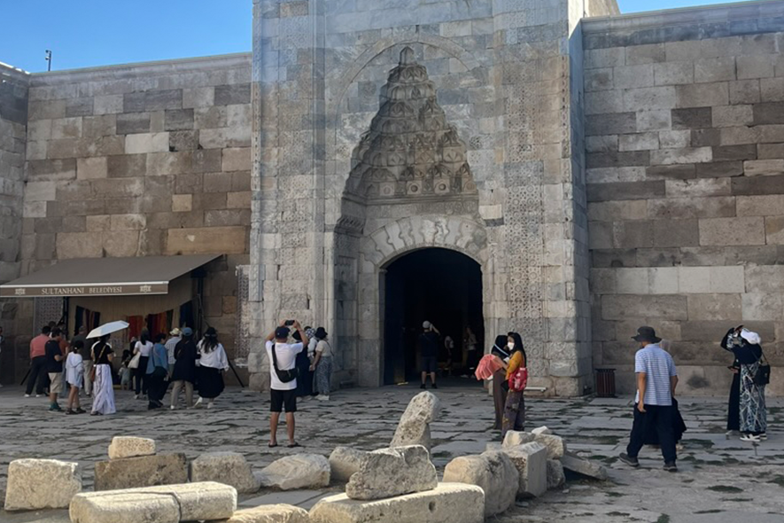 Qui c’è un punto dove la strada sembra non portare da nessuna parte e invece sta già raccontando tutto. È lì che compare una costruzione compatta di pietra chiara: Sultan Hanı. Dall’esterno è una fortezza. Muri alti, superfici imponenti, un portone scolpito con geometrie così precise da sembrare merletti. Nessuna concessione all’eleganza: qui la forma è funzione. Nel XIII secolo era un dispositivo logistico lungo la Via della Seta. Merci, animali, uomini, lingue diverse convivevano dentro lo stesso perimetro protetto. I caravanserragli erano infrastrutture prima che simboli: garantivano sicurezza, ristoro, scambio e momenti di fede . All’interno, il cortile centrale organizzava lo spazio con razionalità. Attorno, ambienti ospitavano magazzini e cucine. Qui si contrattava, si dormiva, si pregava. Il caravanserraglio non era un luogo sacro: era una macchina economica calibrata con precisione. Eppure oggi, svuotato del traffico e del commercio, conserva un’energia trattenuta, come se le pareti ricordassero ancora il rumore degli zoccoli sulla pietra e il tintinnio delle monete. Qui l’Anatolia si rivela per ciò che è stata: una terra che ha funzionato prima di affascinare, un territorio attraversato più che contemplato.