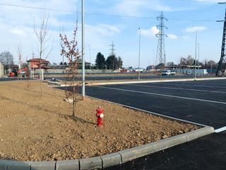 Numerose le aree di parcheggio realizzate; una destinata alla sosta dei mezzi pesanti e una per gli addetti ai lavori, ma non mancano anche diverse zone di parcheggi ad uso pubblico, come ad esempio quella che si apre direttamente su via Roma, che ospita circa 50 posti auto e nella quale è già stata predisposto tutto affinché il comune possa posizionare diverse decine di colonnine per la ricarica di veicoli elettrici.