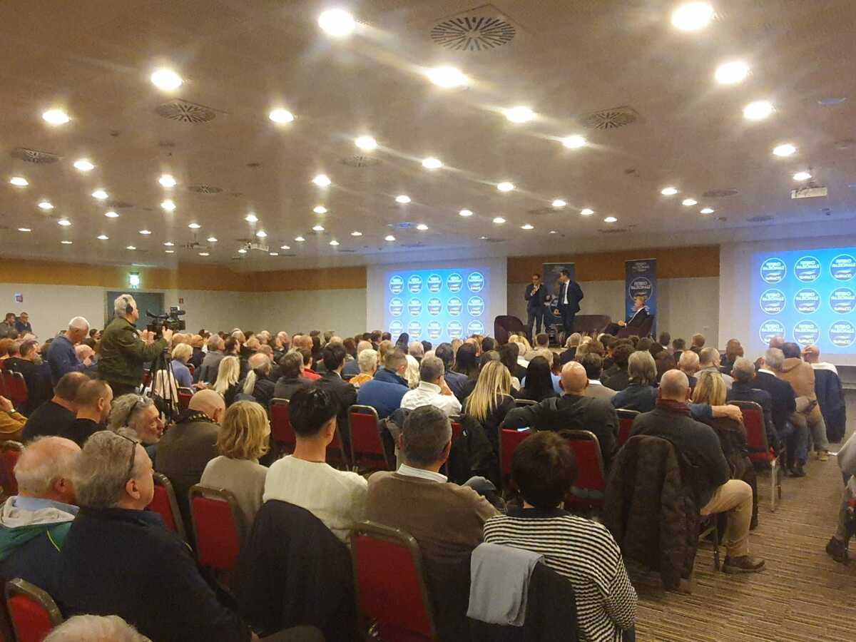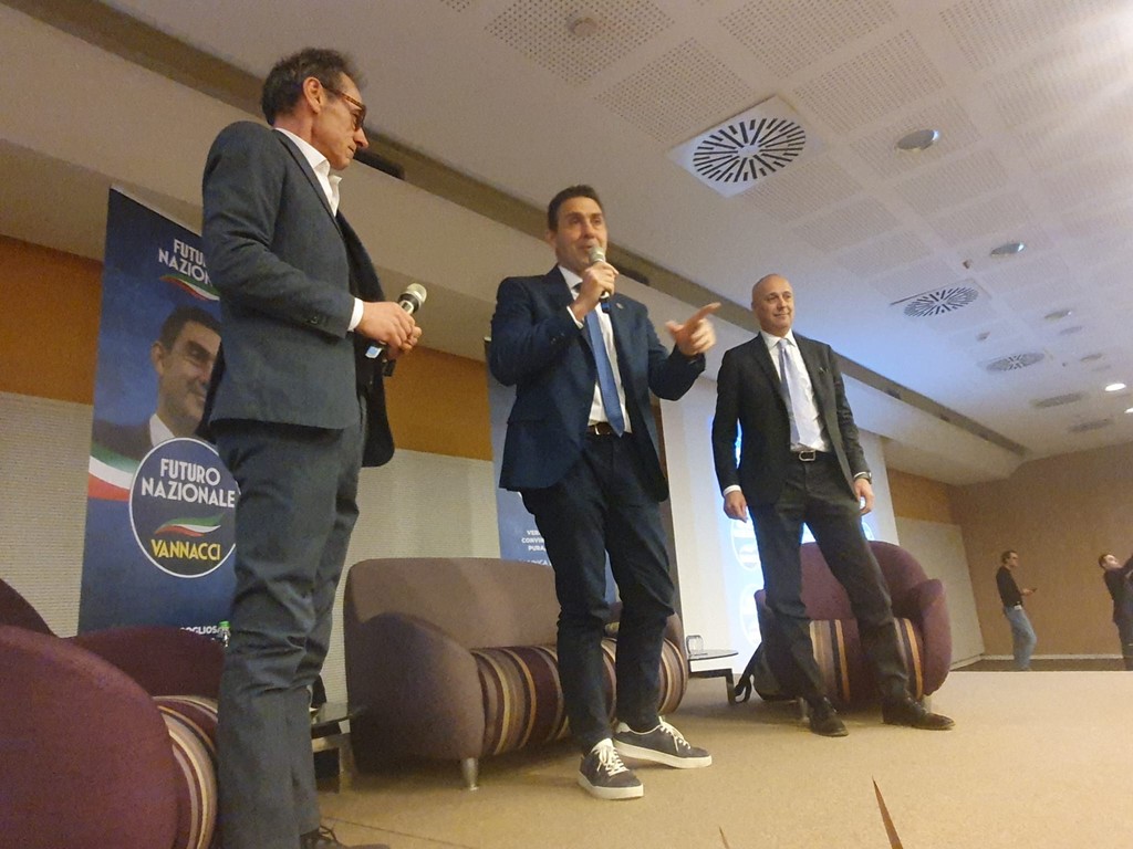 Sul palco, accanto a Vannacci, c’è Daniele Parisi, referente del comitato costituente di Futuro Nazionale a Varese.