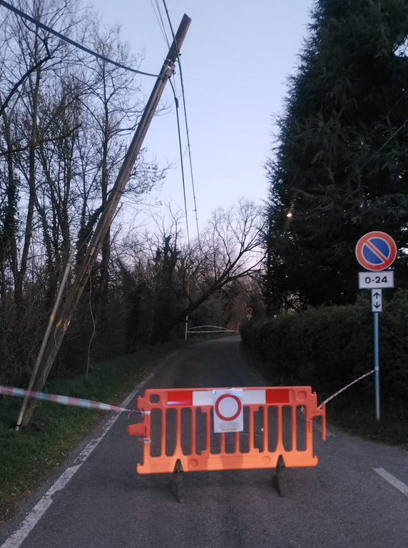 Situazione delicata anche in zona Veroncora, dove quattro pali in legno della rete Telecom, ormai molto vecchi e deteriorati alla base, risultano pericolosamente inclinati. Al momento, tuttavia, l’intervento dei tecnici non potrà avvenire prima di 48 ore. Per ragioni di sicurezza è stato inoltre chiuso un tratto di via Rodari, all’altezza dell’incrocio con via Corbetta, mentre un altro albero pericolante ha richiesto attenzione in viale Diaz.