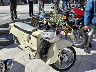 Il presidente del Moto Club, Giorgio Giani, ha richiamato la custodia di valori irrinunciabili, il primo cittadino ha sottolineato la capacità di fare del bene dimostrata dall'associazione unita alla valorizzazione del patrimonio a due ruote, l’assessore allo sport ha ringraziato «…per l’accoglienza nella vostra bella famiglia». Prima che i presenti si concentrassero per la benedizione, applauditissimo il saluto di monsignor Severino Pagani. Richiamata l’aspirazione alla pace, e l'antitesi tra guerra e libertà del viaggio, il sacerdote ha sorriso: «So che andrete in pellegrinaggio ad Assisi. Vi invidio un po’, datemi una Lambretta, vengo con voi».