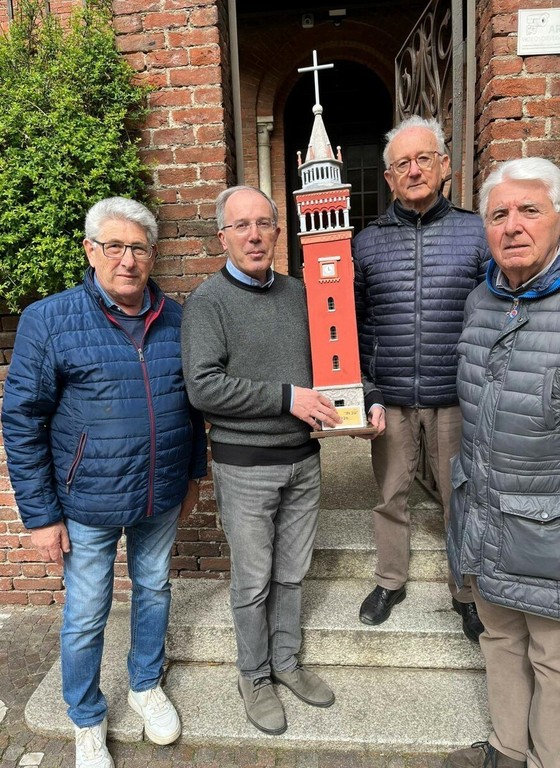 I volontari, infatti, nella giornata di mercoledì 1 aprile hanno regalato al parroco una riproduzione del campanile della chiesa di San Giulio: «In molti ricorderanno che quest’anno la Gioeubia era dedicata proprio alla torre campanaria – spiega il presidente Giuseppe Visentini – di cui teneva in mano una riproduzione fedele.