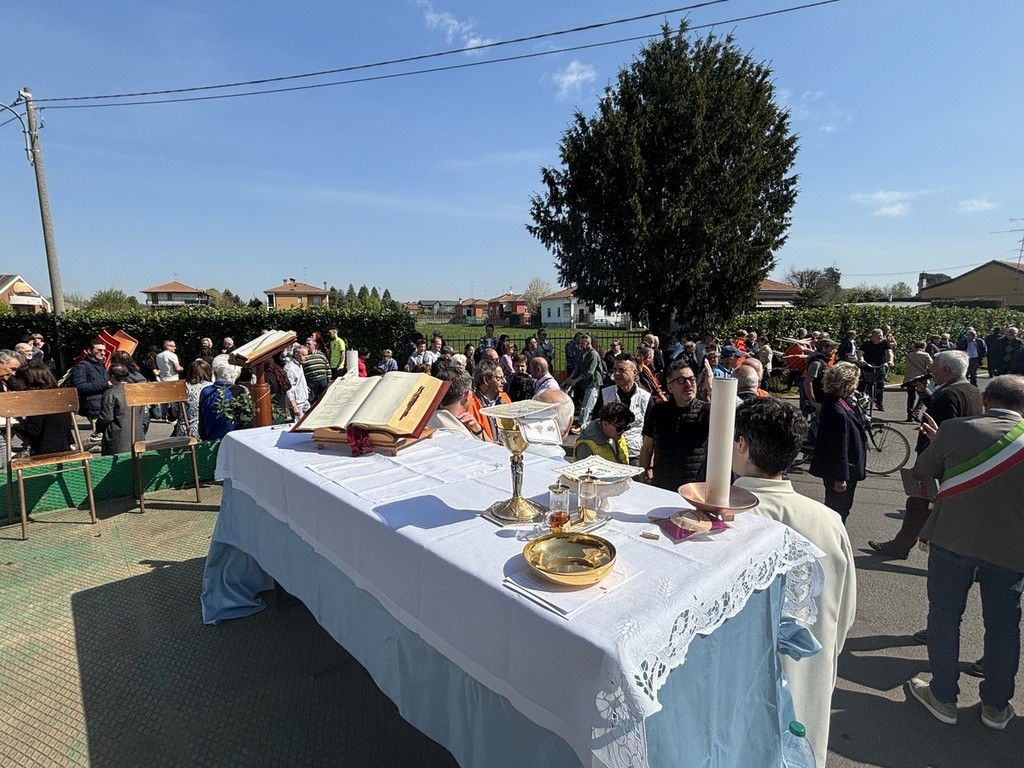 Oggi però era il clou, il via alla festa e alla primavera, come gridava anche il cielo. Una folla si è radunata alla chiesa della Madonna in Veroncora per la messa, celebrata da monsignor Severino Pagani e da don Gaudenzio Santambrogio. In prima fila il sindaco Emanuele Antonelli, la presidente del consiglio Laura Rogora, i consiglieri FdI delegati (rispettivamente al Verde e al Commercio) Orazio Tallarida e Paolo Geminiani, il capogruppo della Lega in consiglio Simone Orsi. Durante il rito si è ricordato che la riscossa della sagra avvenne con monsignor Claudio Livetti, che ci ha sempre creduto. Un'antica tradizione doveva rinascere in tutto il suo valore, il pensiero correva a quei bustocchi tra le due guerre che portavano le uova sode alla Veroncora per unirvi l'insalata.