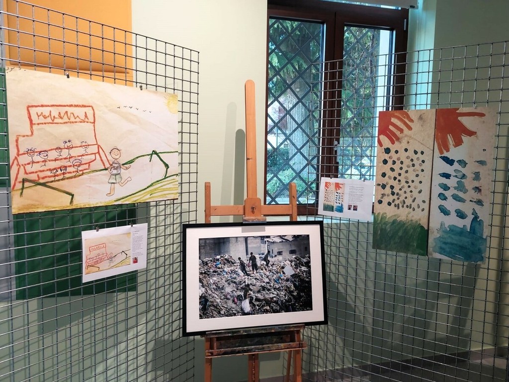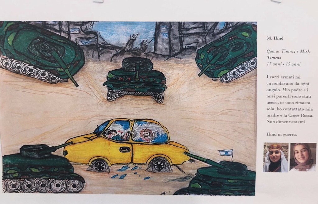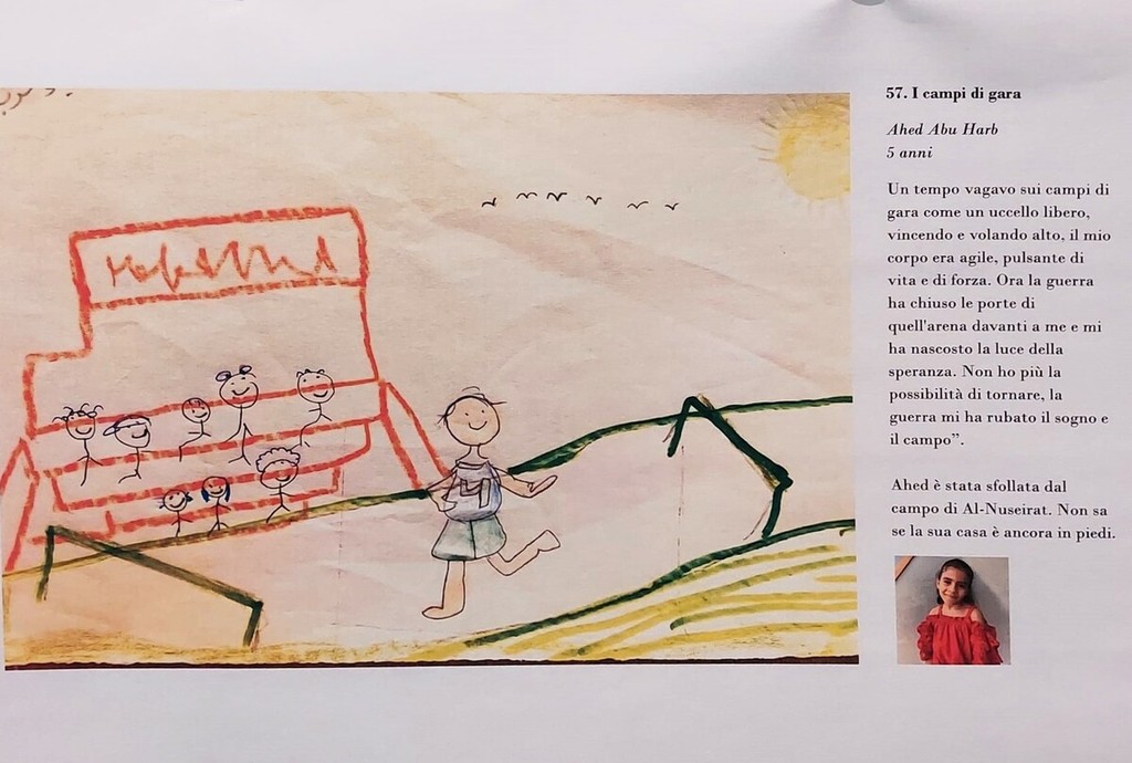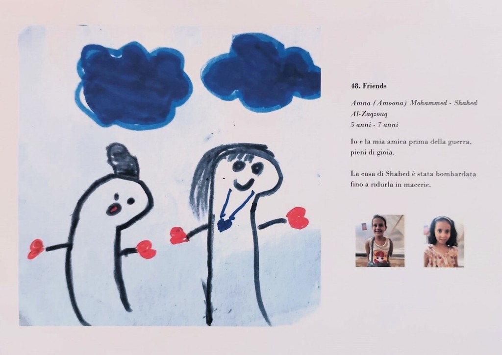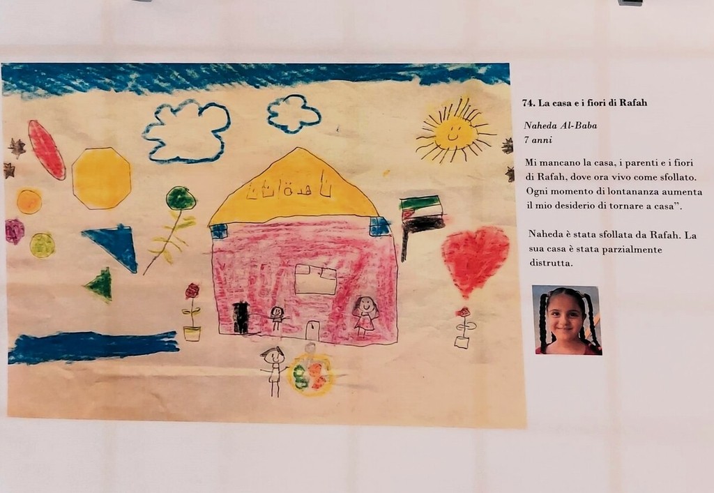 All’interno della sala “Le Scuderie”, infatti, il pubblico ha potuto ammirare alcuni disegni realizzati tra l’ottobre del 2023 e il giugno del 2024 da alcuni bambini di Gaza, intervallati da potenti scatti di guerra che, con il loro contrasto, hanno saputo mostrare egregiamente la differenza tra la realtà di un territorio dilaniato dal conflitto e il mondo come dovrebbe essere, fatto di vita, colori, allegria, sogni e desideri e non di dolore, paura e morte.