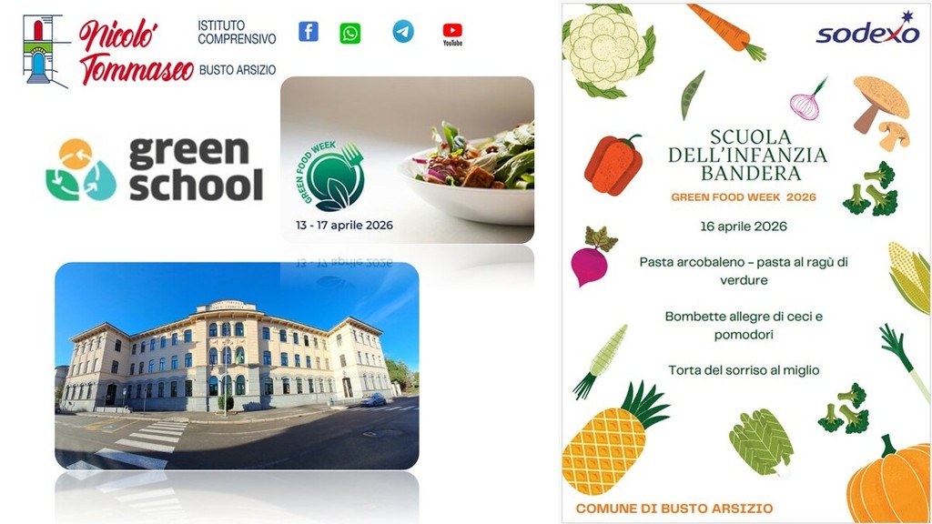 Dal 13 al 17 aprile l’Istituto Comprensivo partecipa alla Green Food Week in modo concreto non solo con le attività curriculari ed extra curriculari ma anche con creazione e realizzazione di menù sostenibili, spiega in una nota. Il 18 aprile le Scuole dell’I.C. “Nicolò Tommaseo” - che aderisce alla Rete di Scopo Green School Varese, partecipa con laboratori, alla presenza d docenti e studenti interni, all’evento “Benvenuta Primavera” che il Comune di Busto Arsizio unitamente alla Rete di Scopo Green School Varese, ed altri partner, realizzerà in piazza Santa Maria a Busto Arsizio. Il terzo appuntamento è quello della celebrazione della Earth Day Giornata della Terra 2026 con un evento Green School il 22 aprile.