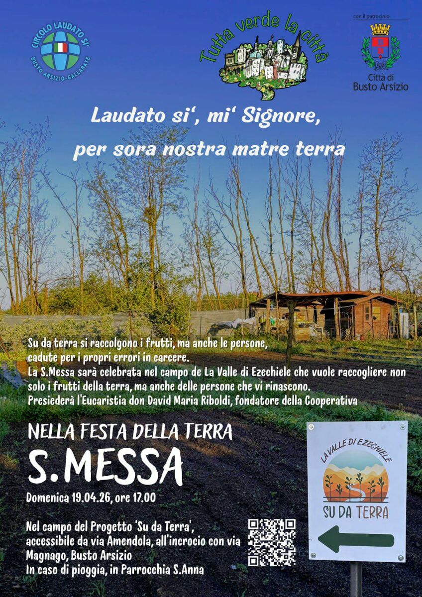 In questo contesto si inserisce l’iniziativa promossa dal Circolo Laudato Si’ Busto Arsizio - Gallarate che, in linea con l’enciclica di Papa Francesco da cui prende ispirazione e con il patrocinio del Comune di Busto Arsizio, propone un momento di celebrazione domenica 19 aprile alle 17 in un luogo simbolico: il campo della cooperativa sociale La Valle di Ezechiele, a Busto Arsizio. Un ambiente che richiama il senso più profondo della giornata: dalla terra nascono i frutti, ma è anche dalla terra che possono rialzarsi le persone che hanno bisogno di una nuova possibilità.