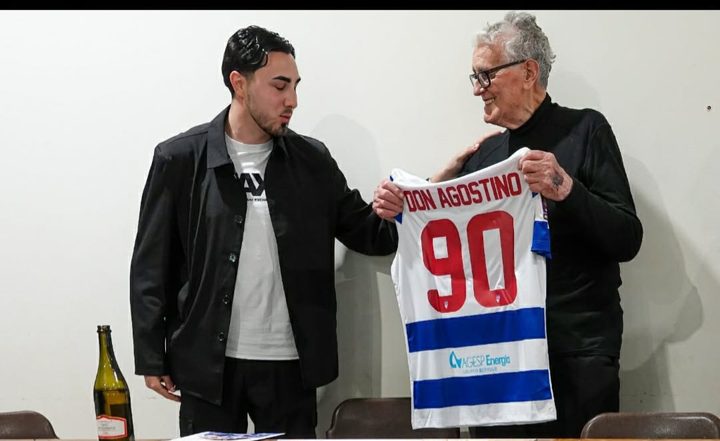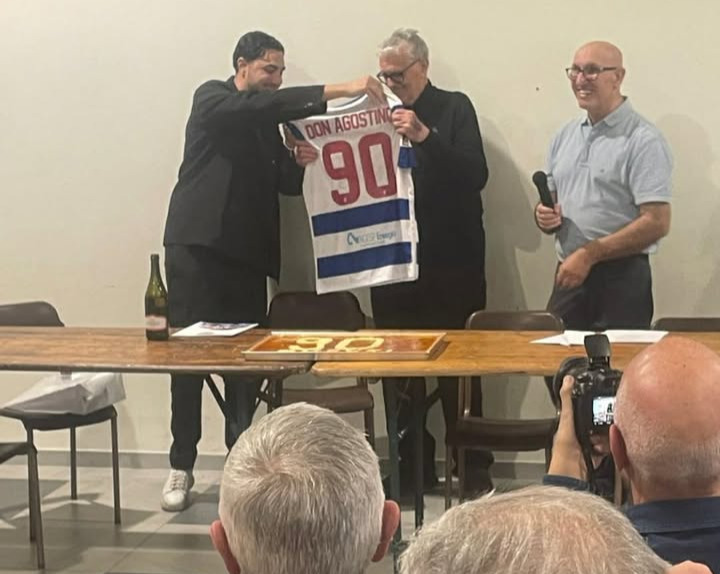 Proprio a Opera, in occasione dell’importante ricorrenza, è stata organizzata una festa a sorpresa per celebrare il suo compleanno. Durante l’evento, a don Agostino è stata donata una maglia ufficiale della Pro Patria, un gesto particolarmente significativo che ha suscitato grande emozione e gioia, assieme a un quadro della Madonna dell’Aiuto, con la sciarpa biancoblù al collo.