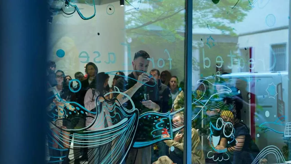 Il momento dedicato alla pulizia delle superfici vetrate ha visto come protagonista il robot WINBOT, impegnato in un continuum operativo con il gesto artistico. Canova ha realizzato un live painting direttamente sui vetri della venue, mentre il dispositivo lavavetri interveniva in tempo reale per ripulire porzioni dell’opera.