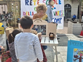 Una squadra nutrita, una piazza resa vivace e giovane, uno sguardo rivolto al futuro: “Primavera in fiore”, iniziativa rientrante nell’Agenda del Verde Pulito promossa dall’Ufficio Ecologia, ha colto, di nuovo, nel segno. Bambini entusiasti e partecipi, fra giochi, laboratori ed esposizione dei lavori realizzati in mesi di approfondimento sui temi dell’ambiente, dei consumi, dell’alimentazione, dell’inquinamento. Un caleidoscopio apprezzato dalle famiglie, attrattivo per i passanti. La manifestazione, promossa dalla Rete di Scopo “Green School Varese”, ha visto fianco a fianco insegnanti, genitori e alunni dell’Istituto comprensivo Galilei con gli Ic “green” di Busto Arsizio (Tommaseo, De Amicis, Pertini), Acof, Ipssct Verri ma anche Plastic Free, Progetti Fantasia, Viva Vittoria – Lilt e Neutalia Srl. Con i referenti delle realtà che quotidianamente informano e formano i più giovani, nelle classi e sul campo, c’erano il consigliere comunale con delega al Verde, Orazio Tallarida, insieme al personale degli uffici e ai colleghi d’aula Vincenzo Marra, Emanuele Fiore, Paolo Geminiani. Assente giustificata l’assessore all’Istruzione Chiara Colombo («Avrebbe voluto esserci – la sottolineatura di Tallarida – ho il compito di portare anche il suo saluto»).