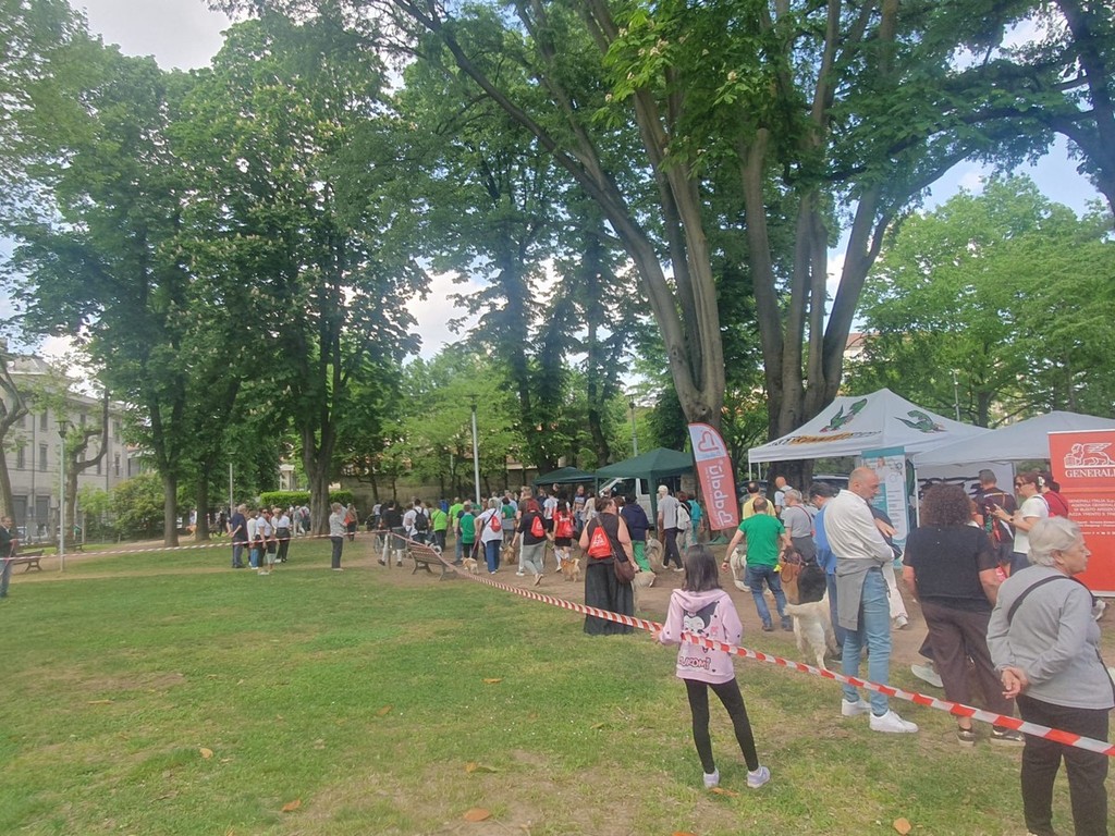 È stato ancora una volta l’ululato del comico Stefano Chiodaroli e dei suoi splendidi pastori tedeschi a dare il via alla Camminata a sei zampe. Un centinaio gli iscritti alla passeggiata di due chilometri e mezzo per il centro di Busto Arsizio con il proprio cane al guinzaglio, tenutasi nel pomeriggio di oggi, domenica 19 aprile, con partenza dal parco Cossetto di via Ugo Foscolo.