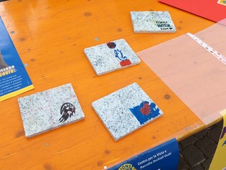 Non è mancato, poi, un momento dedicato a mettere in pratica quanto imparato, sporcando con colori a olio, pennarelli e altri strumenti una serie di mattonelle, per poi provare a ripulirle.