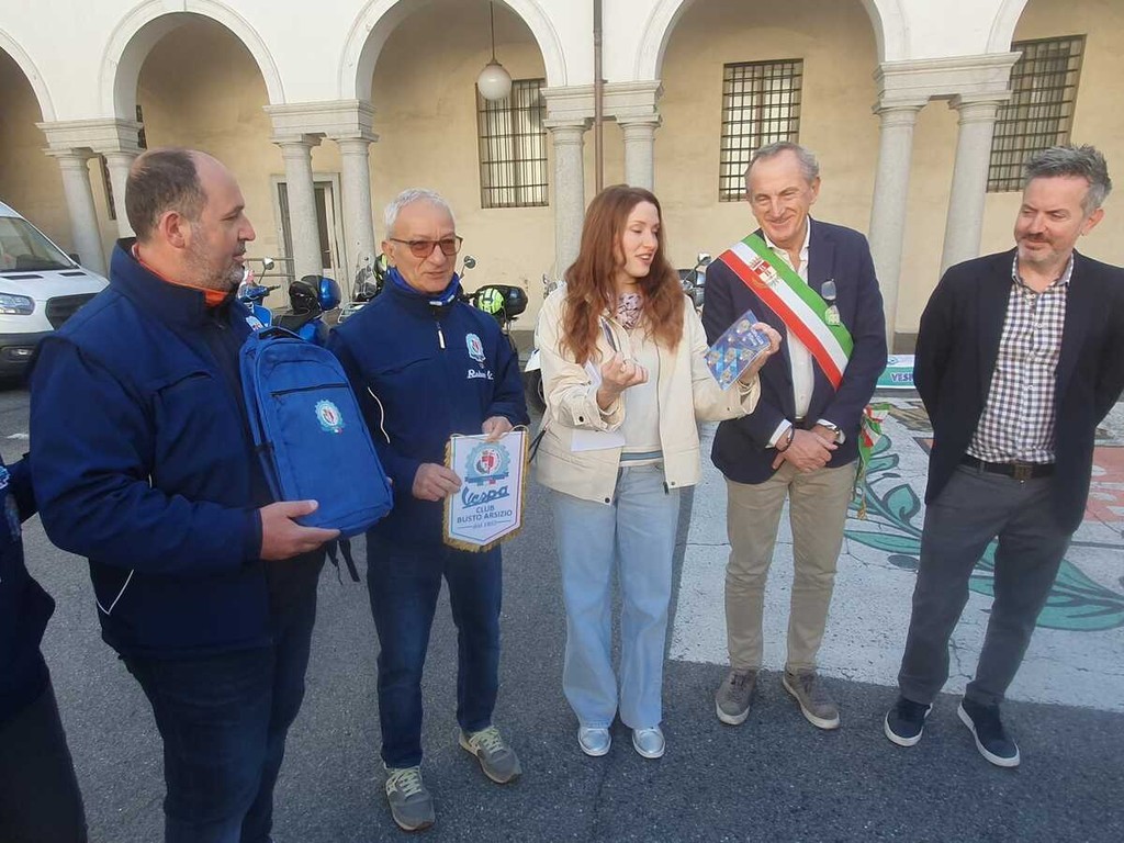 «Siamo contentissimi di avere un personaggio come lei che ha scelto di abitare a Busto – ha detto il sindaco Antonelli alla partenza –. Collabora con noi e oggi non potevo non esserci».