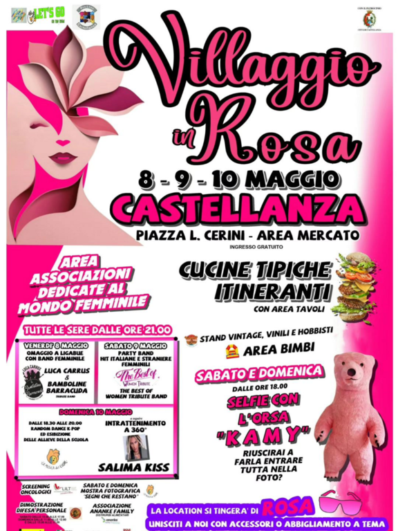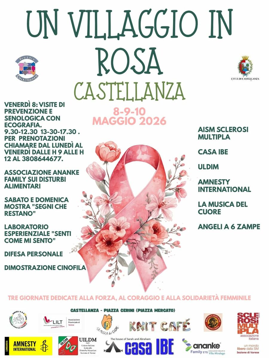 La Pro Loco Castellanza, con il patrocinio della Città di Castellanza, porta in Piazza Cerini (area mercato) “Un Villaggio in Rosa”, evento in programma da venerdì 8 a domenica 10 maggio. Tre giornate dedicate alla forza, al coraggio e alla solidarietà femminile, con ingresso libero e gratuito per tutta la durata dell'evento.