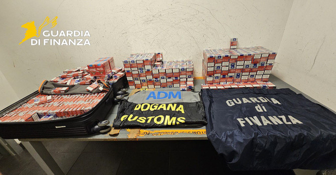 Malpensa, il ritorno degli “spalloni”. La Finanza sequestra oltre 2.500 stecche di sigarette e 160 chili di melassa