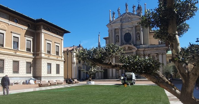 Con la primavera, in centro riecco manto d'erba e ulivi. Una volta rimossa l’installazione, inizieranno i lavori di sistemazione della pavimentazione