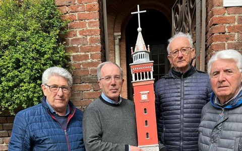 Il Rione Insü dona il campanile di San Giulio al parroco